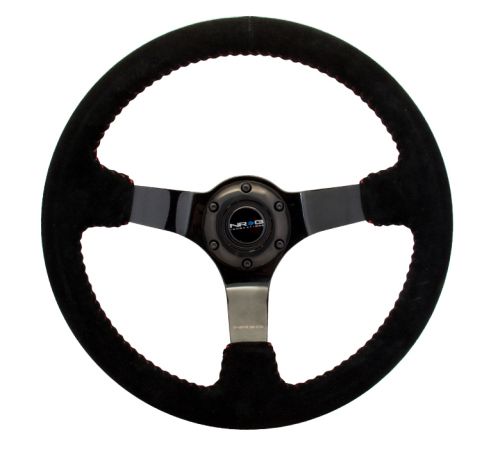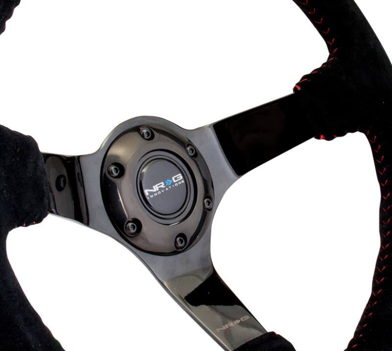 NRG Reinforced Sport Steering Wheel 350mm 3 Inch Deep black Suede with red Baseball Stitching Black Spoke | RST-036BK-S