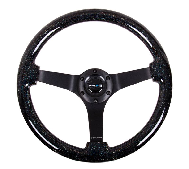 NRG Reinforced Steering Wheel 350mm Classic Black Sparkled Wood Grain Wheel 3 Inch Deep 4mm3-Spoke Center Black | RST-036BSB-BK