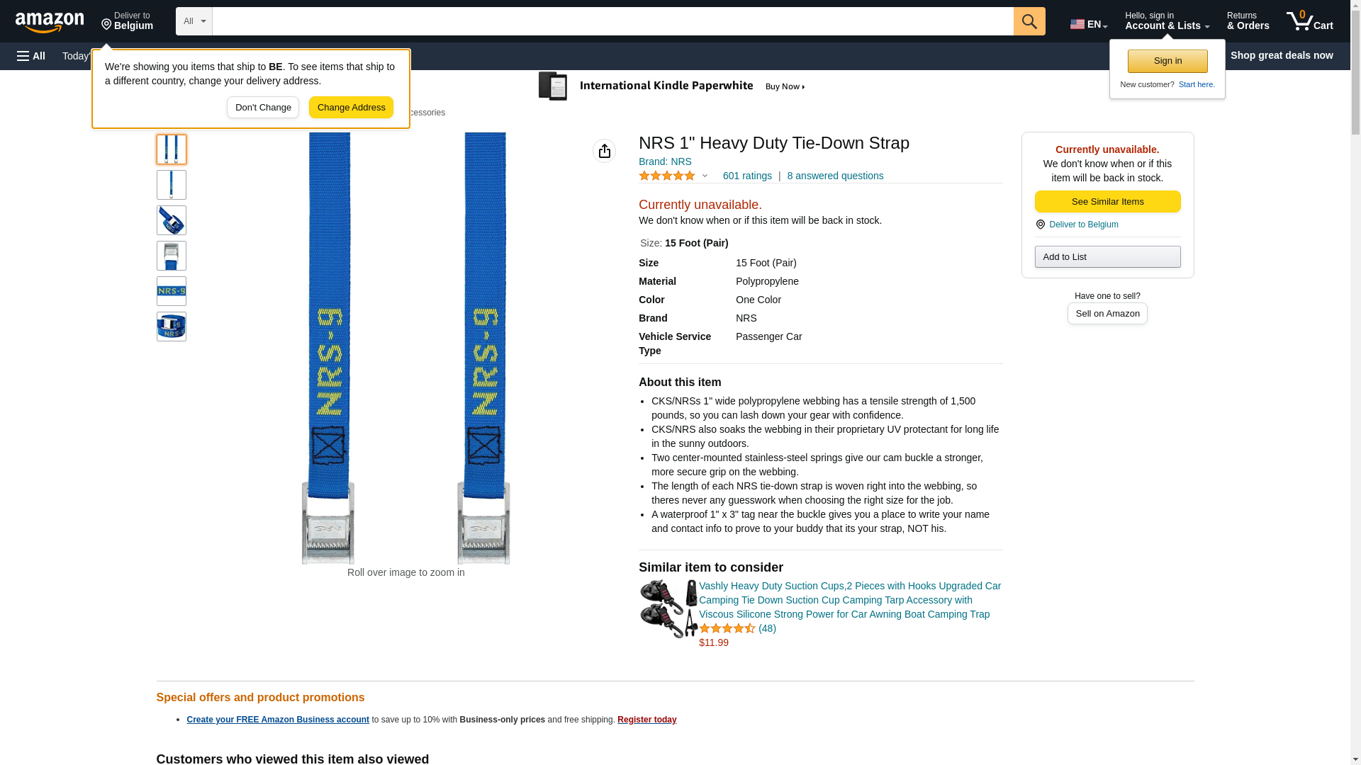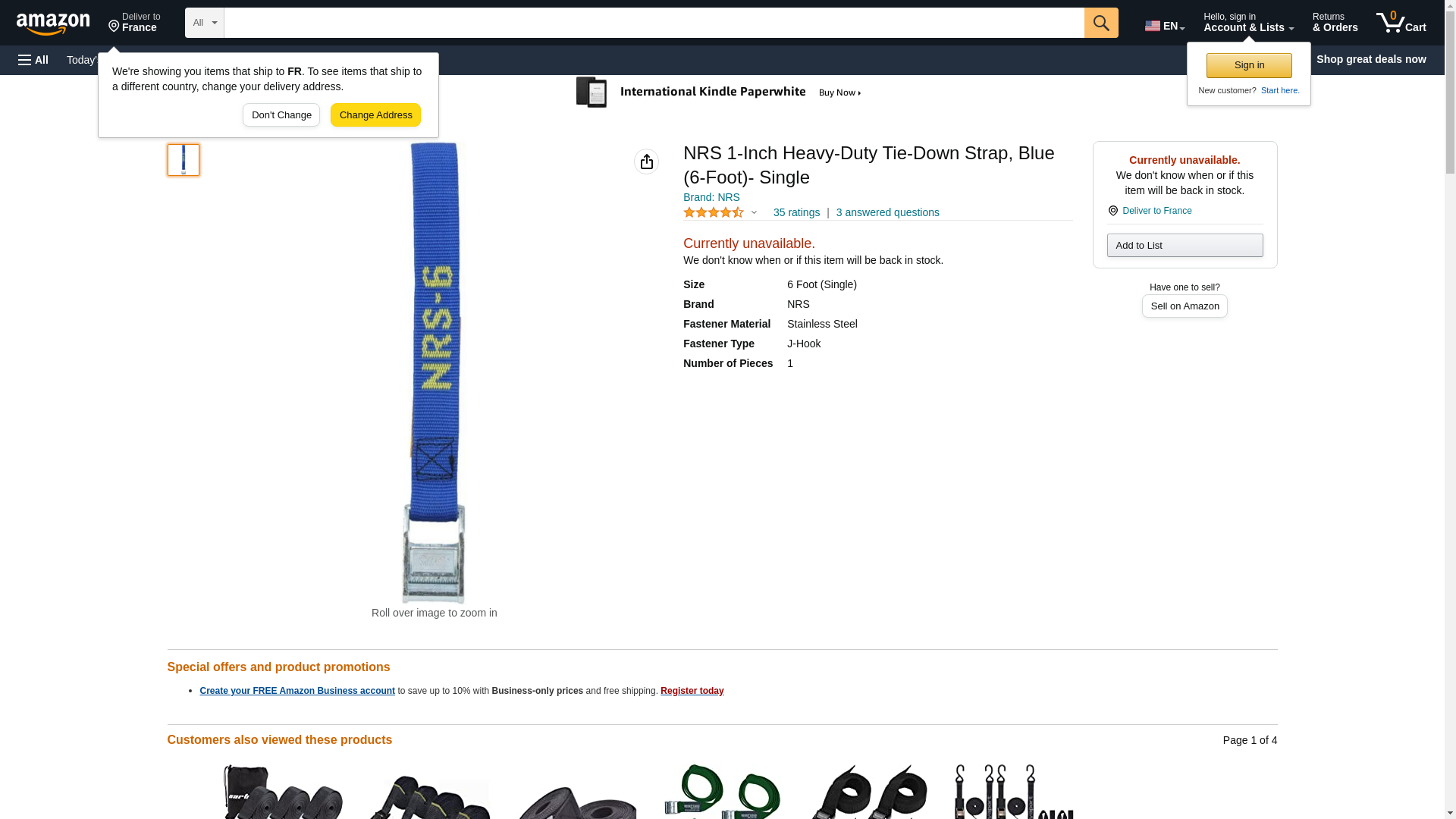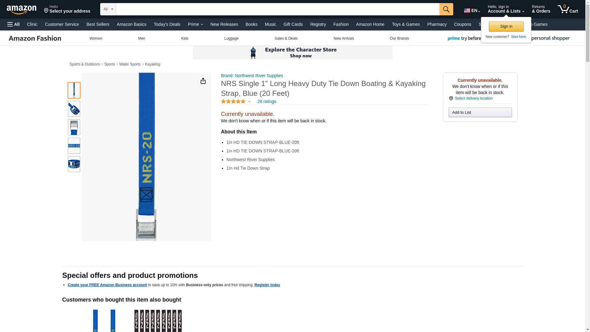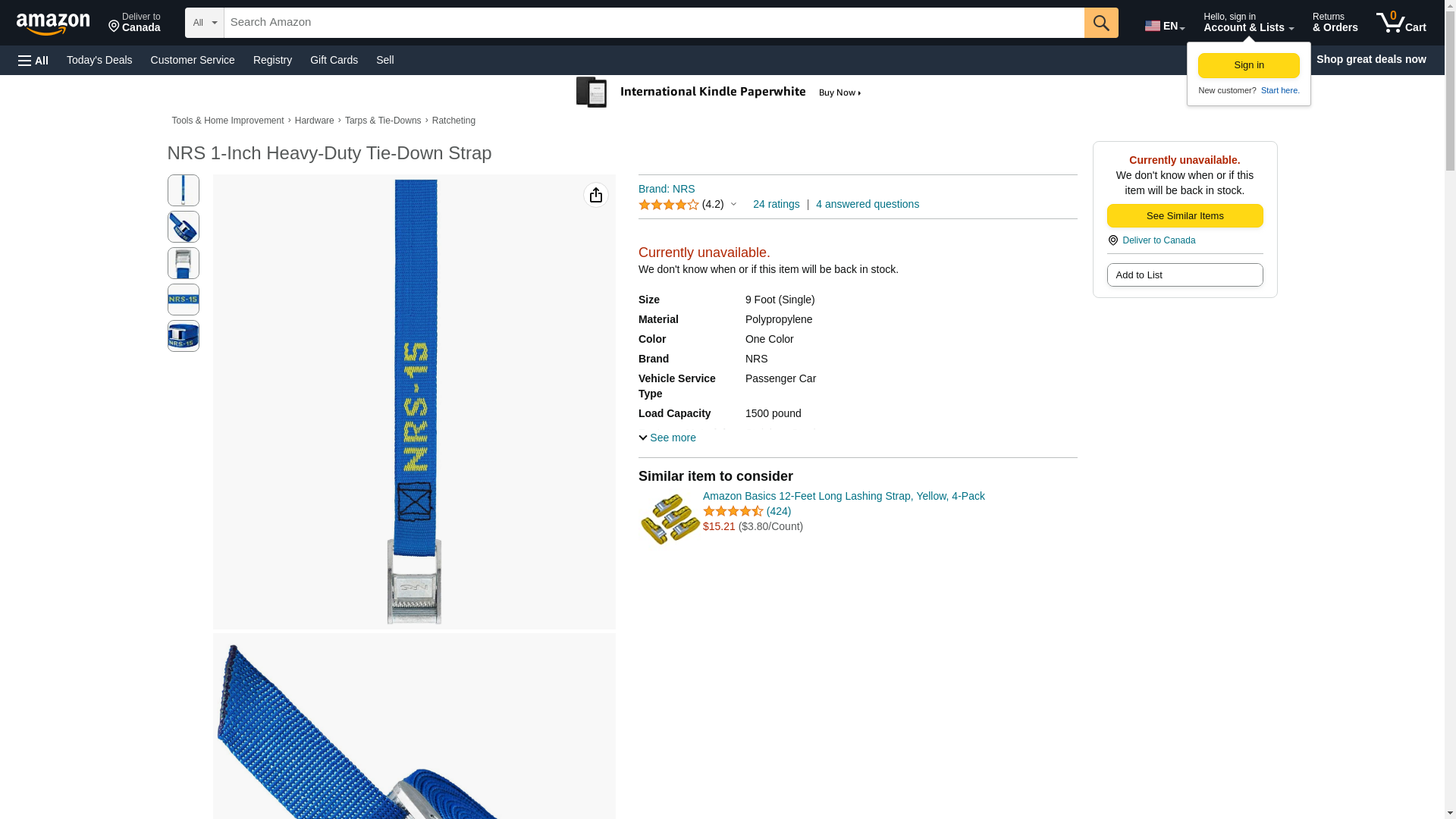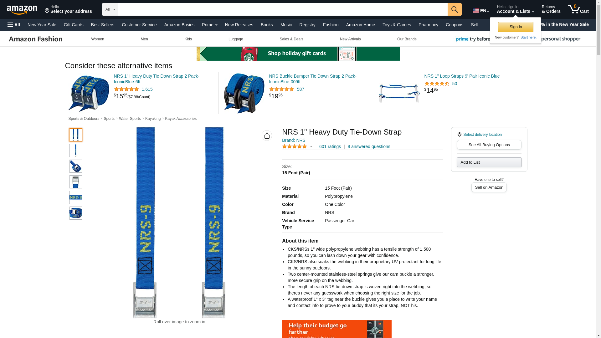 NRS 1-Inch Heavy-Duty Tie-Down Strap, Blue (15-Foot)- Single