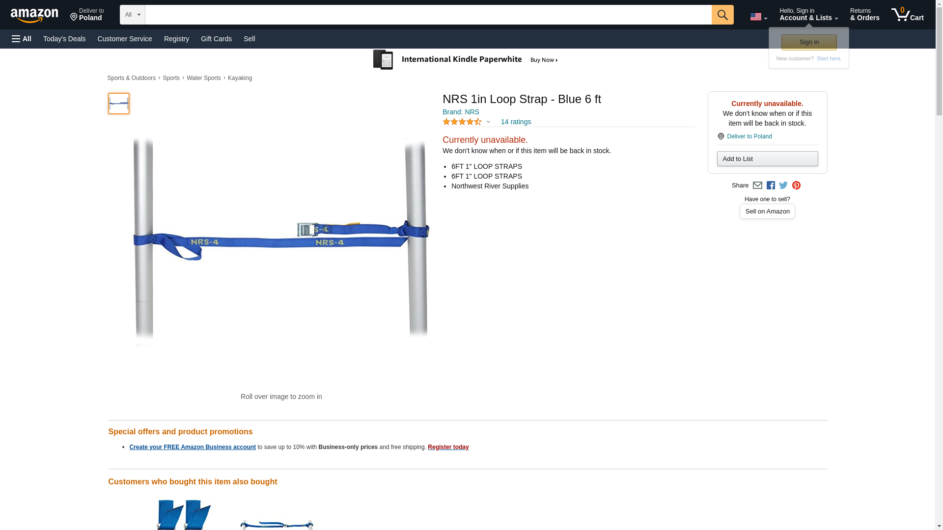 NRS 1in Loop Strap - Blue 6 ft