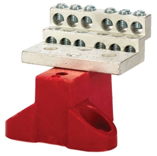 Neutral Bar and Neutral Assembly, 225A Neutral Bar with Mounting Base, 4-14 AWG Wire Range, 600VAC Voltage, 2.250" Width, 2.250" Height, 2.068" Length