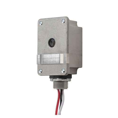 ' Photocontrol, Mounting Fixed, 1/2 In. Conduit, Flush, Voltage 120VAC, Max. Wattage 2000, Max. Incandescent Amps 16.7, Max. Ballast Amps 15, 1 to 5 Foot Candles On, 3 to 15 Foot Candles Off, Color Gray, Temp. Range -40 Degrees to 140 Degrees F, Length 3-3/4 In., Width 2 In., Depth 1-7/8 In., Contact Form SPST, Housing Material Die-Cast Aluminum, Setting On at Dusk, Off at Dawn, Standards UL, CSA, Includes Color Coded Leads '