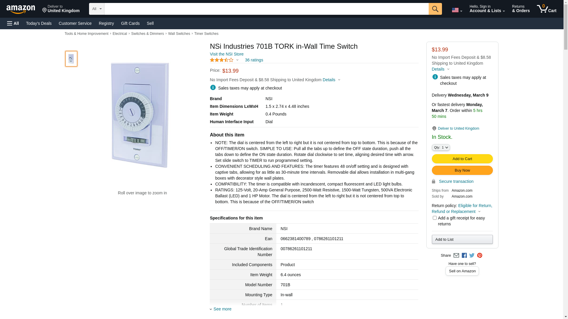 NSi 701B 24 Hour Mechanical in-Wall Time Switch, 20 Amps, White