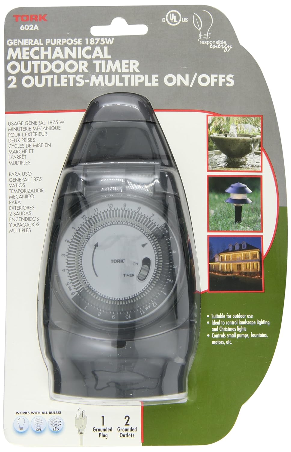 600A Series Outdoor General Purpose Mechanical Timer with 18" Cord, Grounded Plug, 15 Minutes, 2 Outlets