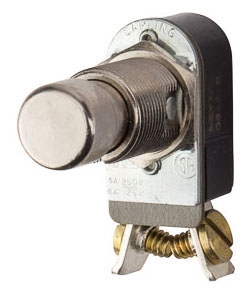 NSI 76050PS Push Button Switch, Push on/Push Off Circuit Function, SPST, Brass/Nickel Actuator, 6/3 amps at 125/250 VAC/DC
