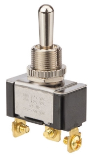Toggle Switch, Maintained Contact and Single Pole, On Off On Circut Function, SPDT, Brass/Nickel Actuator, 20/10 amps at 125/250 VAC, Screw Connection, Pounds