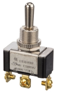 NSI Tork 78190TS Toggle Switch, SPST, Momentary Toggle Switch, Bat Handle Type, SPST, Momentary Contact, Circuit Functions: (On) Off (On), 15 Amp @ 125V AC, 10 Amp @ 250V AC. Metallic Toggle, Screw Terminal. Mounting: Bushing, 15/32".