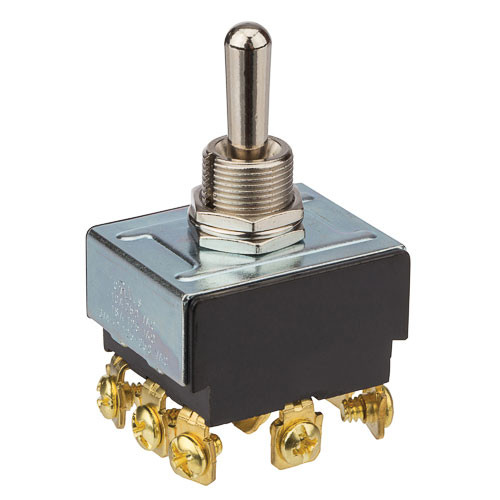 NSI 78315TS Toggle Switch, Maintained Contact and Multiple Pole, On Off-On Circuit Function, 3PDT, Brass/Nickel Actuator, 15/10 amps at 125/250 VAC, Screws Connection
