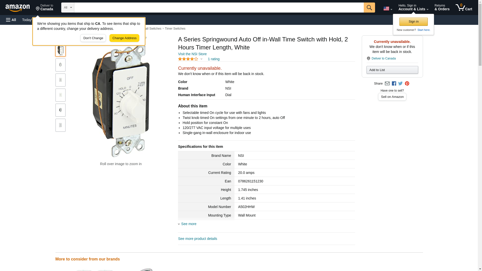 A Series Springwound Auto Off in-Wall Time Switch with Hold, 2 Hours Timer Length, White
