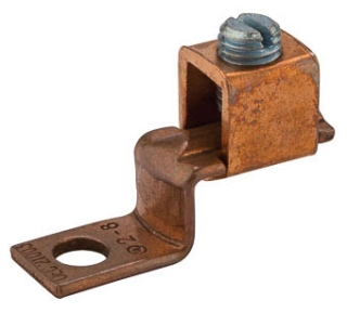 Copper Mechanical Connector, Single and Double Solderless Lug, 2-8 Wire Range, 1/4" Mounting Hole, 70 Ampere Rating. ...