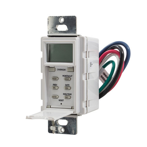 Sunset/Sunrise, Astronomic 7 Day in-Wall Timer, 120/277 VAC, SPST Switch Type, White
