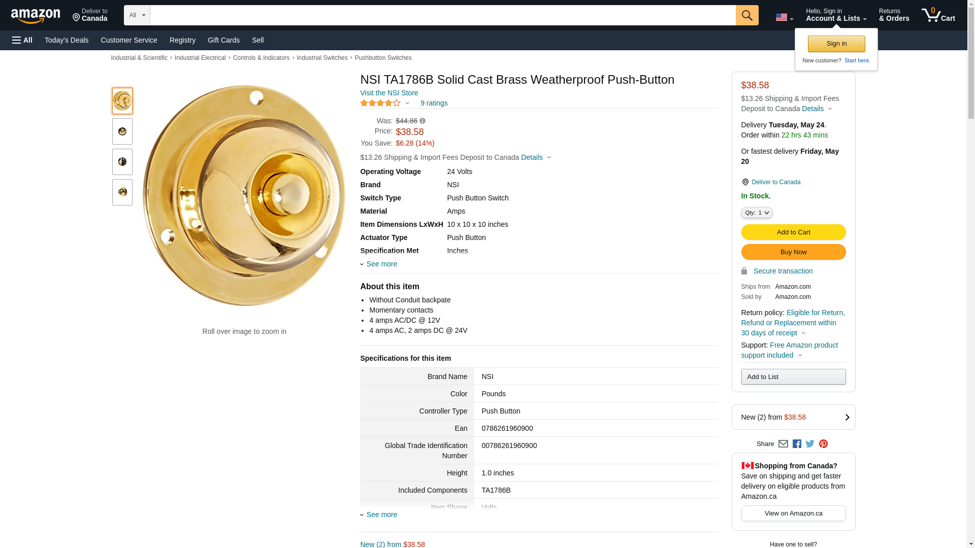 NSI TA1786B Solid Cast Brass Weatherproof Push-Button, Ohm