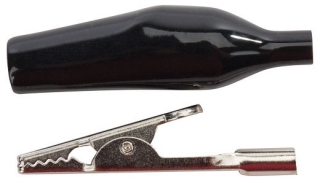 Alligator Test Clip with Vinyl Boot, 2" Size, Black. Alligator test clip. Vinyl boot. 2-inches Size. Black color