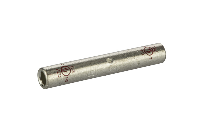 Long Barrel Tinned Copper Splice 8 AWG Long Barrel Tinned Copper Splices are produced from high conductivity copper tubing. Serrations indicate proper crimp locations. Tin-plated to provide corrosion resistance. Marked with die index and color code. Suitable for use at voltages up to 35KV provided connector is properly taped. 5KV is the maximum voltage in all bare splices. Temperature rating 90 degrees C. SPECIFICATIONS: QUANTITY: 1 Count RATED: 35KV Max WIRE RANGE: 8 AWG EXPANDED WIRE RANGE: 8 AWG COLOR CODE: Red ID: 0.173 OD: 0.272 LENGTH: 1.752 BRAND EQUIVALENT: Blackburn CU8 Burndy YS8C Homac C-8 Ilsco CTL8 Morris 94510 Panduit SCL8-L Penn Union BBCU-8 Thomas & Betts 54804 MANUFACTURER: NSi Industries PART NUMBER: C-8 UPC: 662381037497 We have the best selection and prices on connectors.