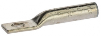 Copper Compression Connector, Long Barrel Copper Lug, L Series, One Hole, 1/4" Stud, 1-1/4" Strip Length, 0.38" OD, 0...