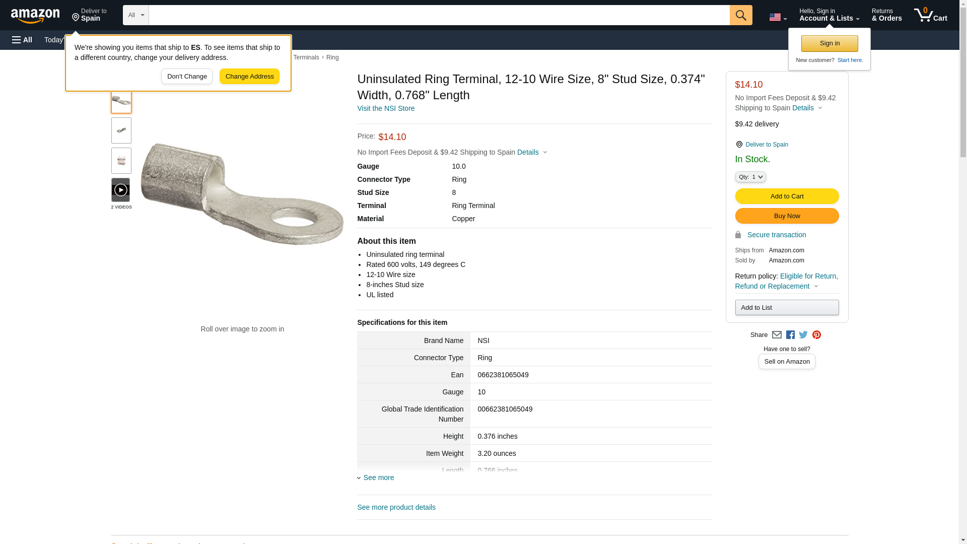 Uninsulated Ring Terminal, 12-10 Wire Size, 8" Stud Size, 0.374" Width, 0.768" Length. Uninsulated ring terminal. Rat...