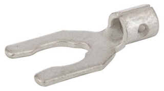 Uninsulated Spade Terminal with Locking Spade, 16-14 Wire Size, 10" Stud Size, 0.331" Width, 0.669" Length. Uninsulat...