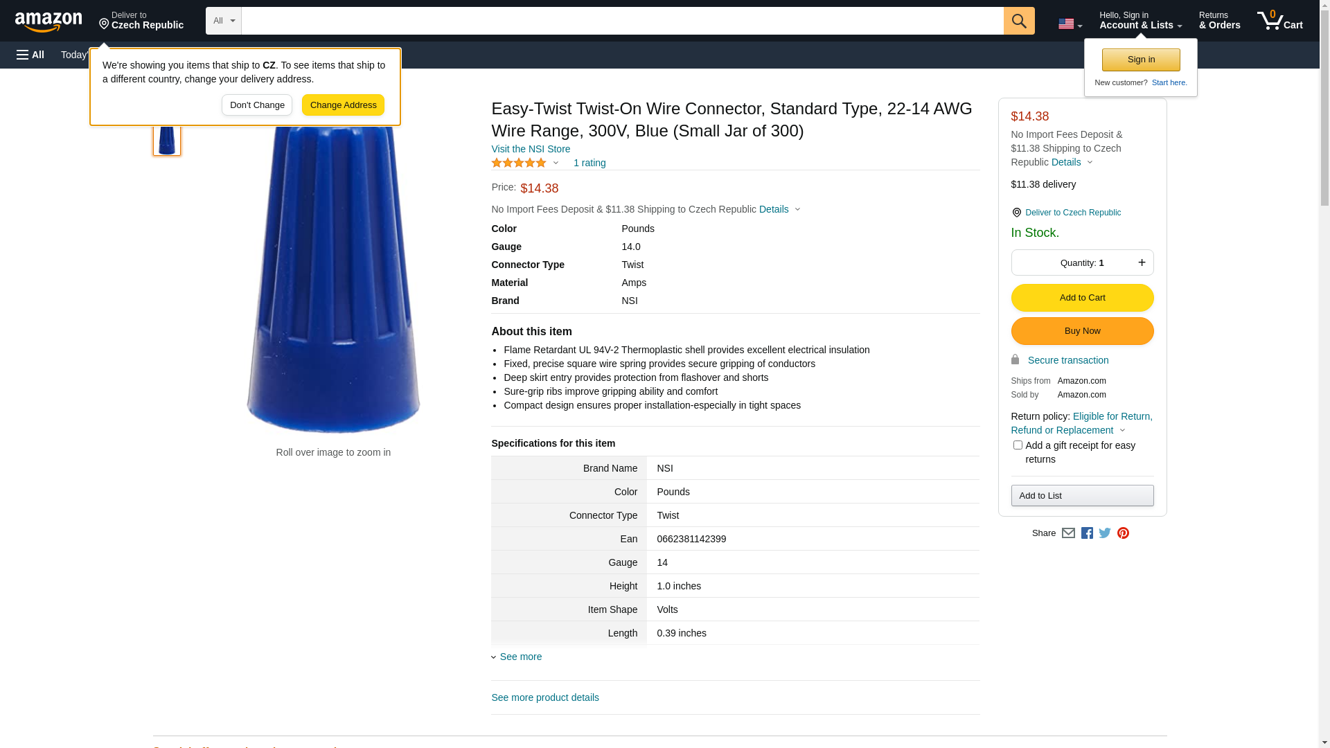 Easy-Twist Standard Twist-On Wire Connectors - Standard Blue 22-14 AWGAPPLICATIONS:Easy-Twist Standard Twist-On Wire Connectors have a flame retardant UL 94V-2 thermoplastic shell that provides excellent electrical insulation. They have a temperature rating of 221 degrees F (105 degrees C). Their fixed, precise square wire spring provides secure gripping of conductors. Their deep skirt entry provides protection from flashover and shorts. Sure-grip ribs improve gripping comfort. Compact design ensures proper installation - especially in tight spaces. Threaded funnel entry guides the wires into the connector easily. Pre-twisting of wires is not necessary. 1,000 volt maximum in fixtures and signs. UL 486C Listed Wire Connector. For Copper Wire Only.SPECIFICATIONS:MATERIAL: UL 94V-2 thermoplastic shellTEMPERATURE RATING: 221 degrees F (105 degrees C)RANGE/VOLTAGE:BLUE: 22-14 AWG Min. 2 #22 AWG Max. 3 #16 AWG 300 Volt MaxBRAND EQUIVALENT: 3M H-30-BOX Act AL-ACS-BL-C All States TOC-2 AMP GPCI-WC-WG-BL-BG-150 Cambridge Resources WCS-C6 Del City 901485 Gardner Bender 16-002 Ideal 30-272 Mars 25931 Morris 23272 Penn Union PNBK-C Thomas & Betts 330PMANUFACTURER: NSi IndustriesPART NUMBER: WC-B-SJUPC: 662381142399We have the best selection and prices on wire connectors.