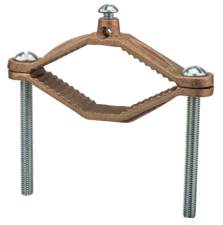 Heavy Duty Bronze Water Pipe Clamp for 2.5-4in. PipeBronze water pipe clamps with serrated head, cast bronze body with plated steel screws. They are designed for use alone or with heavy duty bronze adapters. SPECIFICATIONS: PIPE SIZE (IPS) GROUND WIRE RANGE 2 1/2 - 4 inch 10 sol - 2 str QUANTITY: 1 Count LENGTH: 6.250 WIDTH: 0.943 HEIGHT: 3.674 BRAND EQUIVALENT: Blackburn J2124 Greaves G12 Morris 91664 Penn Union KP-4 MANUFACTURER: NSi Industries PART NUMBER: G-12 UPC: 662381010124 We have the best selection and prices on grounding products.