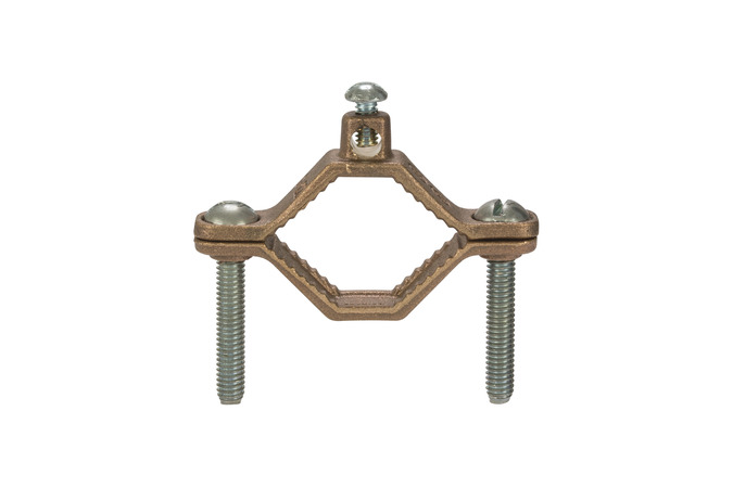 - Bronze ground clamp for bonding bare copper wire to water pipe or for use as a water meter shunt
