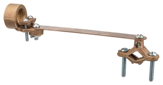 Bronze Ground Clamps for Rigid Conduit w/ Flexible Wire Strap 0.5-1in. Pipe Bronze Ground Clamps for Rigid Conduit with Flexible Wire Straps are for connecting the grounding conductor in rigid conduit to water pipe. The copper strap allows flexibility during grounding and helps protect the conduit system from the results of vibrations in the water system. Assembled with zinc-plated steel screws. SPECIFICATIONS: PIPE SIZE (IPS) GROUND WIRE RANGE CONDUIT HUB SIZE 1/2 - 1 inch 10 sol - 3/0 str 1 inch QUANTITY: 1 Count BRAND EQUIVALENT: Blackburn JPS1 Burndy C-11CSH-3 Panduit KLS-1A-X Penn Union KLS-1A MANUFACTURER: NSi Industries PART NUMBER: G-83 UPC: 662381010469 We have the best selection and prices on grounding products.