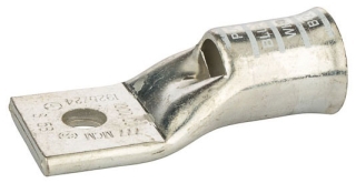 1 Hole Short Barrel Copper Compression Lug for Flexible Copper Cable 1000 MCM - 5/8" BoltCompression lugs for flexible copper cables are connecters that have a gentle, continuous flared end to ensure ease of cable insertion of flexible and extra flexible cables such as locomotive, welding, mining cable and more. The flared end also reduces pressure on the cable strands after installation and protects them from chafing and breakage as a result of cable movement. Tin-plated for corrosion resistance. Rated 600 volts for copper cables only. 90 degrees C. SPECIFICATIONS:QUANTITY: 1 CountRATED: 600 VoltsHOLES: 1WIRE RANGE: 1000 MCMEXPANDED WIRE RANGE: 1000 - 500 MCMCOLOR CODE: WhiteCOMM: 1000ASTM CLASS H: 800WELDING CLASS M: 700DIESEL LOCOMOTIVE: 777.7BOLT SIZE: 5/8I.D.: 1.158O.D.: 1.491LENGTH: 4.769WIDTH: 2.170BRAND EQUIVALENT: Panduit LCAF750-58-3Ilsco FE-777Penn Union BLU-100S-FL MANUFACTURER: NSi IndustriesPART NUMBER: GL10058BUPC: 662381036902 We have the best selection and prices on connectors.