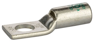 Copper Compression Connector, Peep Hole Copper Lug, GL Series, One Hole Nema, 3/8" Stud, 1-1/16" Strip Length, 0.47" OD, 0.67" Width, 1.83" Length, 0.11" Thick, Green