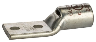 Copper Compression Connector, Peep Hole Lug, GL-N Series, 2 Hole, 3/8" Stud Size, 1.54" Width, 3.70" Length, 0.22" Th...