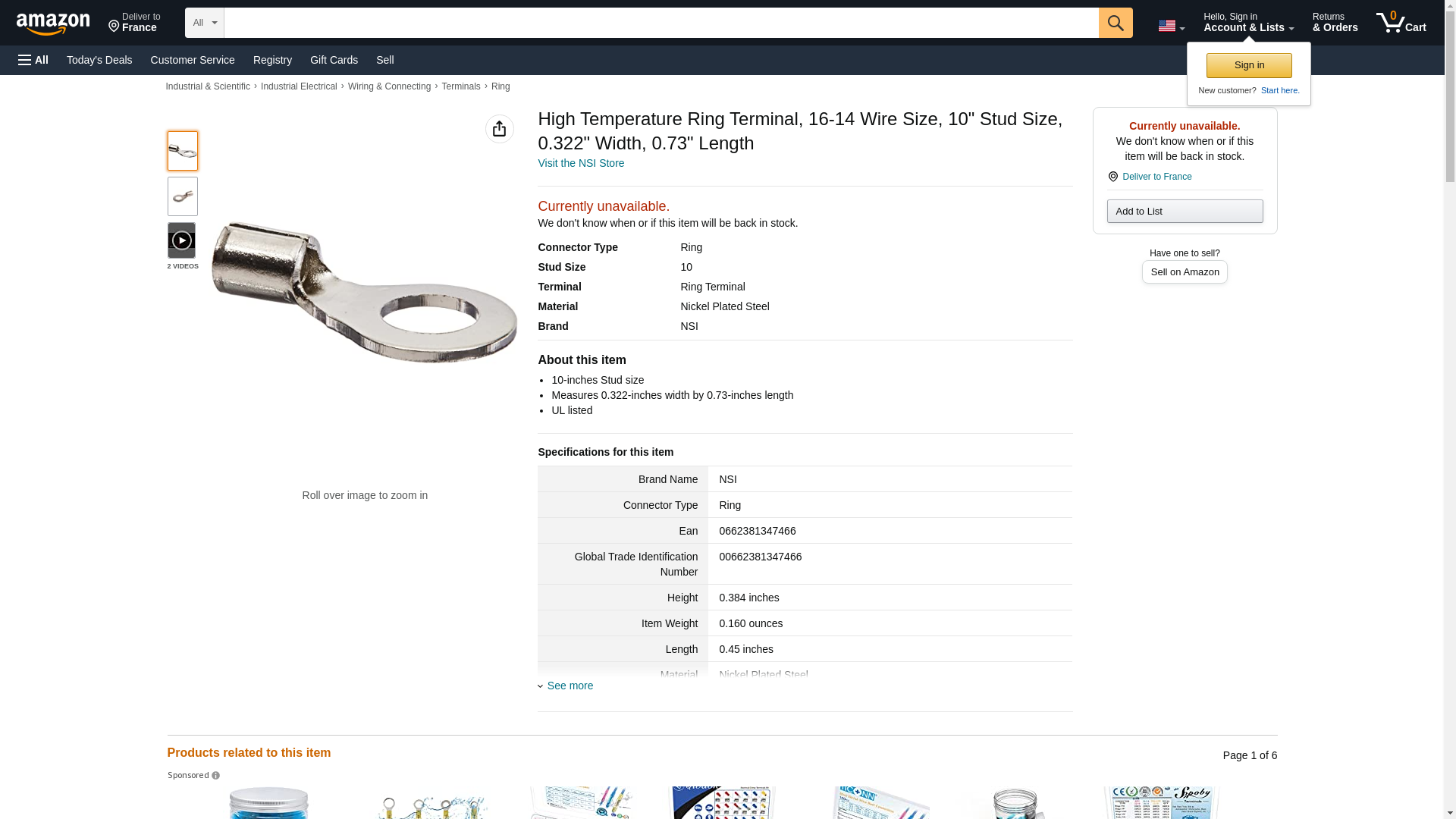 NSI HTR16-10 High Temperature Ring Terminal, 16-14 Wire Size, 10" Stud Size, 0.322" Width, 0.73" Length
