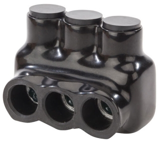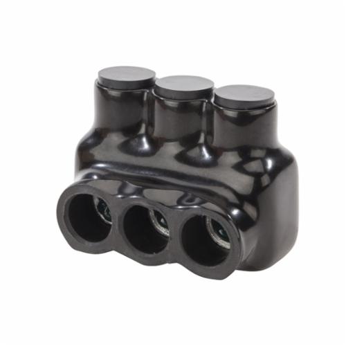 3 Wire Polaris 3/0-6 AWG Insulated Multi-Cable Connector BlocksPolaris Insulated Multi-Cable Connectors have wire entry ports on one side only. Eliminates the need for cover and taping. Insulated with high-dielectric strength plastisol. Molded for precise fit and supplied with removable access plugs over the hex screws. Abrasion and chemical resistant. UV resistant. Will not support combustion. UL Listed UL486B Wire Connector. AL9CU. Cold temperature rated to -45 degrees C, rated 600V, 90 degrees C. Dual rated for use with copper and/or aluminum cables. Not recommended for fine-stranded, flexible wire (see Polaris Grey Series).SPECIFICATIONS:QUANTITY: 1 CountCOLOR: BlackRATED: 600 VoltsNO. OF PORTS: 3WIRE ALIGNMENT: Same SideWIRE RANGE: 3/0 - 6 AWGLENGTH: 2.63 in.HEIGHT: 1.80 in.WIDTH: 1.60 in.TORQUE VALUE (IN/LBS): 250HEX SIZE: 5 /16BRAND EQUIVALENT: Burndy BIBS2/0-3 Ilsco PBTS-3-3/0 Blackburn AMTS306 Greaves USA-3/0-3 MANUFACTURER: NSi IndustriesPART NUMBER: IPL3/0-3UPC: 662381912015 We have the best selection and prices on connectors.