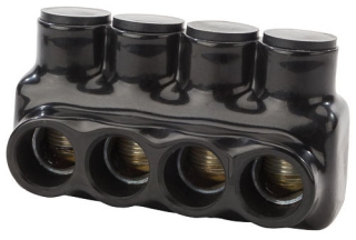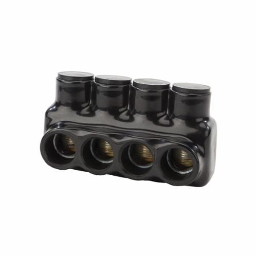 4 Wire Polaris 350 MCM - 6 AWG Insulated Multi-Cable Connector BlocksPolaris Insulated Multi-Cable Connectors have wire entry ports on one side only. Eliminates the need for cover and taping. Insulated with high-dielectric strength plastisol. Molded for precise fit and supplied with removable access plugs over the hex screws. Abrasion and chemical resistant. UV resistant. Will not support combustion. UL Listed UL486B Wire Connector. AL9CU. Cold temperature rated to -45 degrees C, rated 600V, 90 degrees C. Dual rated for use with copper and/or aluminum cables. Not recommended for fine-stranded, flexible wire (see Polaris Grey Series). SPECIFICATIONS: QUANTITY: 1 Count COLOR: Black RATED: 600 Volts NO. OF PORTS: 4 WIRE ALIGNMENT: Same Side WIRE RANGE: 350 MCM - 6 AWG LENGTH: 4.54 in. HEIGHT: 2.46 in. WIDTH: 2.13 in. TORQUE VALUE (IN/LBS): 400 HEX SIZE: 5 /16 BRAND EQUIVALENT: Blackburn AMTS35064 Burndy BIBS-350-4 Greaves USA-350-4 Ilsco PBTS-4-350 Panduit PCSB350-4S-3Y Penn Union IPB-NA350-4S MANUFACTURER: NSi Industries PART NUMBER: IPL350-4 UPC: 662381914026 We have the best selection and prices on connectors.