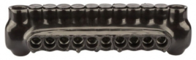 10 Wire Polaris 4-14 AWG Insulated Multi-Cable Connector with Mounting Holes, One Side Wire Entry Polaris Insulated Multi-Cable Connectors have wire entry ports on one side only. Mounting holes at each end of the connector allow for direct isolated mounting to the trough, panel or wireway. IPLM Series connectors are insulated with high-dielectric strength plastisol. Molded for precise fit and supplied with removable access plugs over the hex screws. Eliminates the need for cover and taping. Abrasion and chemical resistant. UV resistant. Will not support combustion. Mounting holes will accept a 1/4" bolt. UL Listed 486B Wire Connector. Cold temperature rated to -45 degrees C, rated 600V, 90 degrees C. Dual rated for use with copper and/or aluminum cables. Not recommended for fine-stranded, flexible wire. SPECIFICATIONS: QUANTITY: 1 Count COLOR: Black RATED: 600 Volts NO. OF HOLES: 10 WIRE ALIGNMENT: One Side WIRE RANGE: 4-14 AWG LENGTH: 5.71 in. WIDTH: 1.24 in. HEIGHT: 1.39 in. TORQUE VALUE: 45 HEX SIZE: Slotted MANUFACTURER: NSi Industries PART NUMBER: IPLM4-10 UPC: 662381930088 We have the best selection and prices on connectors.