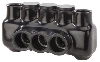 3 Wire Polaris 350 MCM-6 AWG Insulated Multi-Cable Connector with Mounting Holes, Either Side Wire Entry Polaris Insulated Multi-Cable Connectors have wire entry ports on both sides of the connector to allow for access from either side. Mounting holes at each end of the connector allow for direct isolated mounting to the trough, panel or wireway. IPLMD Series connectors are insulated with high-dielectric strength plastisol. Molded for precise fit and supplied with removable access plugs over the hex screws. Eliminates the need for cover and taping. Abrasion and chemical resistant. UV resistant. Will not support combustion. Mounting holes will accept a 1/4" bolt for 3/0 AWG and a 5/16" bolt for 250 MCM and 350 MCM. UL Listed 486B Wire Connector. AL9CU. Cold temperature rated to -45 degrees C, rated 600V, 90 degrees C. Dual rated for use with copper and/or aluminum cables. Not recommended for fine-stranded, flexible wire. SPECIFICATIONS: QUANTITY: 1 Count COLOR: Black RATED: 600 Volts NO. OF PORTS: 3 WIRE ALIGNMENT: Either Side WIRE RANGE: 350 MCM-6 AWG LENGTH: 5.12 in. WIDTH: 2.41 in. HEIGHT: 2.77 in. TORQUE VALUE: 400 HEX SIZE: 5/16 BRAND EQUIVALENT: Blackburn AMTDM35063 Greaves USAD-350-3M Ilsco PBTD-3-350-M Morris 97853 MANUFACTURER: NSi Industries PART NUMBER: IPLMD350-3 UPC: 662381944016 We have the best selection and prices on connectors.