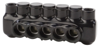 5 Wire Polaris 350 MCM-6 AWG Insulated Multi-Cable Connector with Mounting Holes, Either Side Wire Entry Polaris Insulated Multi-Cable Connectors have wire entry ports on both sides of the connector to allow for access from either side. Mounting holes at each end of the connector allow for direct isolated mounting to the trough, panel or wireway. IPLMD Series connectors are insulated with high-dielectric strength plastisol. Molded for precise fit and supplied with removable access plugs over the hex screws. Eliminates the need for cover and taping. Abrasion and chemical resistant. UV resistant. Will not support combustion. Mounting holes will accept a 1/4" bolt for 3/0 AWG and a 5/16" bolt for 250 MCM and 350 MCM. UL Listed 486B Wire Connector. AL9CU. Cold temperature rated to -45 degrees C, rated 600V, 90 degrees C. Dual rated for use with copper and/or aluminum cables. Not recommended for fine-stranded, flexible wire. SPECIFICATIONS: QUANTITY: 1 Count COLOR: Black RATED: 600 Volts NO. OF PORTS: 5 WIRE ALIGNMENT: Either Side WIRE RANGE: 350 MCM-6 AWG LENGTH: 7.22 in. WIDTH: 2.41 in. HEIGHT: 2.77 in. TORQUE VALUE: 400 HEX SIZE: 5/16 BRAND EQUIVALENT: Blackburn AMTDM35065 Greaves USAD-350-5M Ilsco PBTD-5-350-M Morris 97855 MANUFACTURER: NSi Industries PART NUMBER: IPLMD350-5 UPC: 662381944030 We have the best selection and prices on connectors.