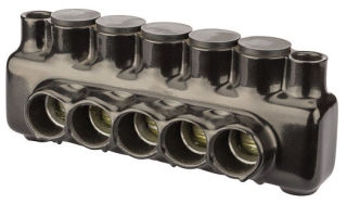 5 Wire Polaris 500 MCM-4 AWG Insulated Multi-Cable Connector with Mounting Holes, Either Side Wire Entry
