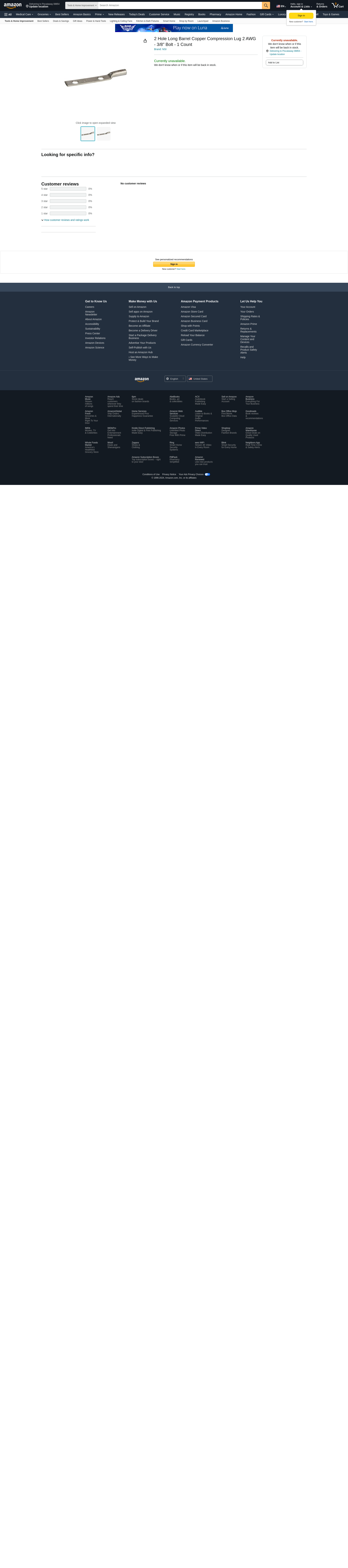 2 Hole Long Barrel Copper Compression Lug 2 AWG - 3/8" Bolt - 1 Count