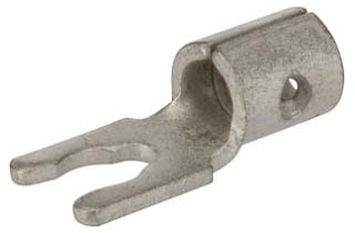 Uninsulated Spade Terminal with Locking Spade, 12-10 Wire Size, 10" Stud Size, 0.311" Width, 0.717" Length. Uninsulat...