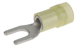 Nylon Insulated Spade Terminal, 12-10 Wire Size, 10" Stud Size, 0.354" Width x 1.012" Length. Nylon insulated spade t...