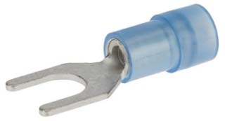 Nylon Insulated Spade Terminal, 16-14 Wire Size, 10" Stud Size, 0.315" Width x 0.846" Length. Nylon insulated spade t...