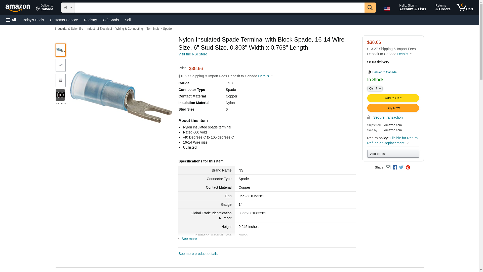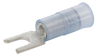Nylon Insulated Spade Terminal with Block Spade, 16-14 Wire Size, 6" Stud Size, 0.303" Width x 0.768" Length. Nylon i...