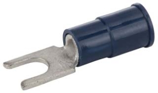 16-14 AWG Vinyl Insulated Block Spade Terminal #6 Stud - 100 Count Vinyl insulated block spade terminals have a similar tongue style to a spade. Block spades have longer, flatter sides designed for use in terminal blocks.Vinyl insulated block spade terminals are made of electro tin-plated copper with brazed seam, Vinyl (PVC). 300V, 75 degrees C. FEATURES: STYLE: Vinyl insulated Block SpadeMATERIAL: Tin-plated copper QUANTITY: 100 CountWIRE SIZE: 16-14 AWGSTUD SIZE: 6LENGTH: 0.828WIDTH: 0.251BRAND EQUIVALENT: 3M MVU14-6FBKBurndy T14-6BFPenn Union BS4B-6MANUFACTURER: NSi IndustriesPART NUMBER: S16-6V-B UPC: 662381062796We have the best selection and prices on mini terminals.