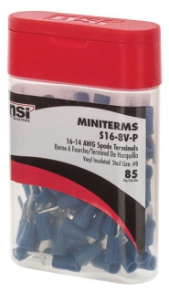 NSI S16-8V-P 16-14 AWG VINYL INSULATED SPADE TERMINAL #8 STUD 85 PC. PRO PACK