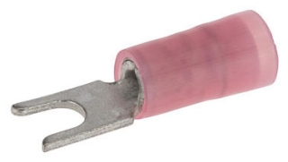 Nylon Insulated Spade Terminal, 22-18 Wire Size, 4" Stud Size, 0.228" Width x 0.846" Length. Nylon insulated spade te...