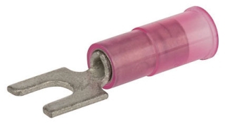 Nylon Insulated Spade Terminal with Block Spade, 22-18 Wire Size, 6" Stud Size, 0.244" Width x 0.846" Length. Nylon i...