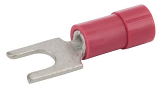 Vinyl Insulated Spade Terminal with Block Spade, 22-18 Wire Size, 6" Stud Size, 0.244" Width, 0.846" Length