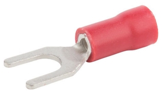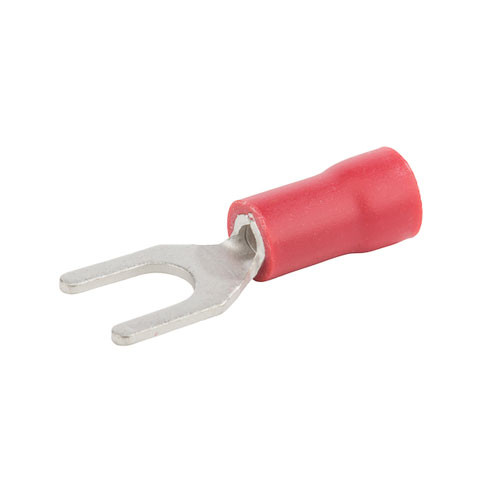 Vinyl Insulated Spade Terminal, Small Packs, 22-18 Wire Size, 8" Stud Size, 0.276" Width, 0.862" Length. Vinyl insula...