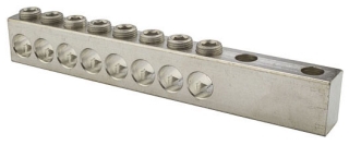 8 Port Aluminum Dual Rated Transformer Connector 350 MCM - 6 AWGTransformer Connectors are made from 6061T-6 aluminum alloy. They are electro-tin plated for low contact resistance. Two NEMA 1/2" holes for easy attachment. Rated 600 volts. SPECIFICATIONS: QUANTITY: 1 Count RATED: 600 Volts WIRE RANGE: 350MCM-6AWG NO. OF CONDUCTORS: 8 MTG. HOLE DIA.: 0.560 MTG. HOLE SPACING: 1.750 TORQUE VALUE (IN/LBS): 400 MTG. BOLT SIZE: 1/2 WRENCH SIZE: 5/16 LENGTH: 11.160 in. WIDTH: 1.000 in. HEIGHT: 1.440 in. BRAND EQUIVALENT: Ilsco PET-8-350-Z MANUFACTURER: NSi Industries PART NUMBER: STL350-8 UPC: 662381097057 We have the best selection and prices on connectors.
