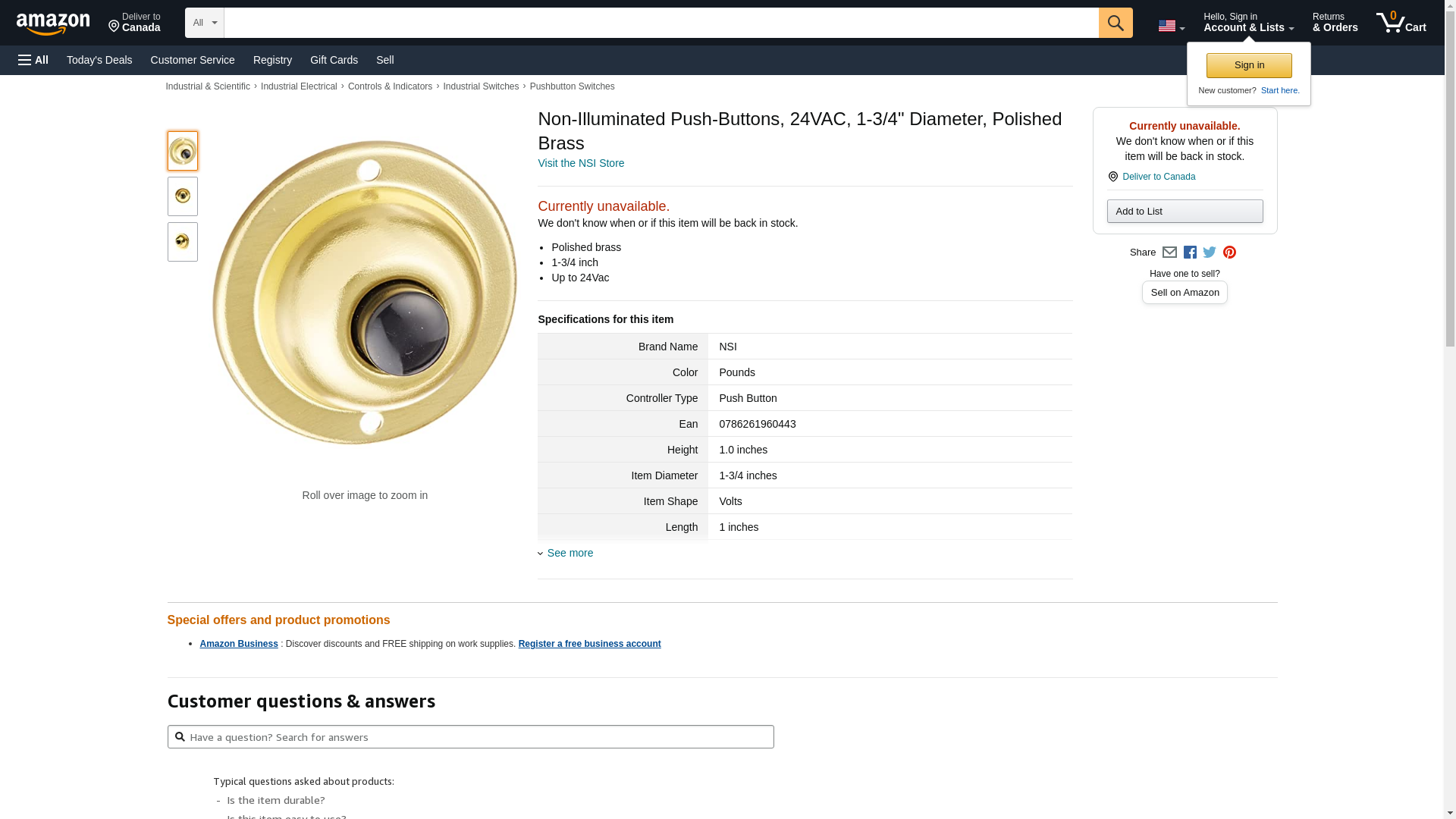 Non-Illuminated Push-Buttons, 24VAC, 1-3/4" Diameter, Polished Brass
