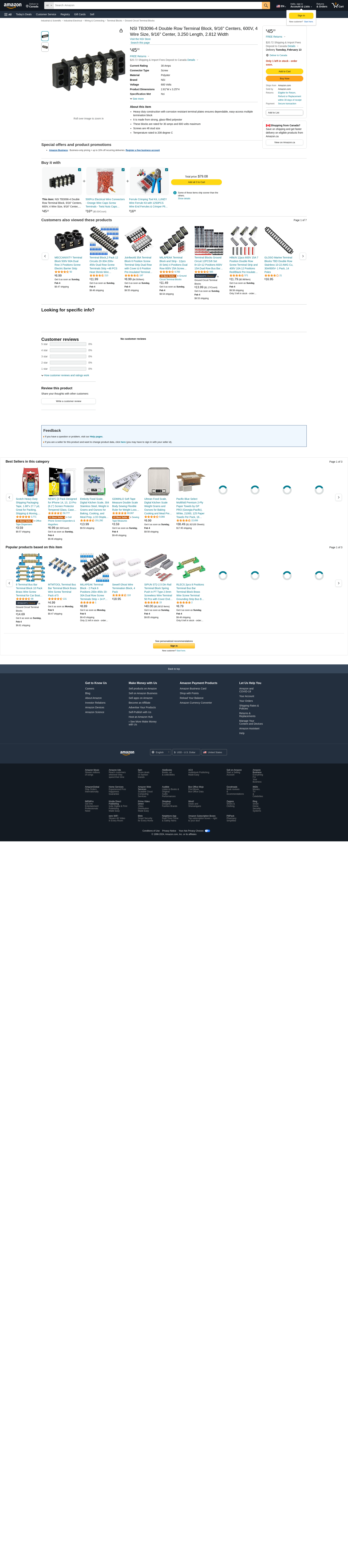Power Distribution and Terminal Block, Double Row Terminal Block - 9/16" Centers, 600V, 4 Wire Size, 9/16" Center, 3....
