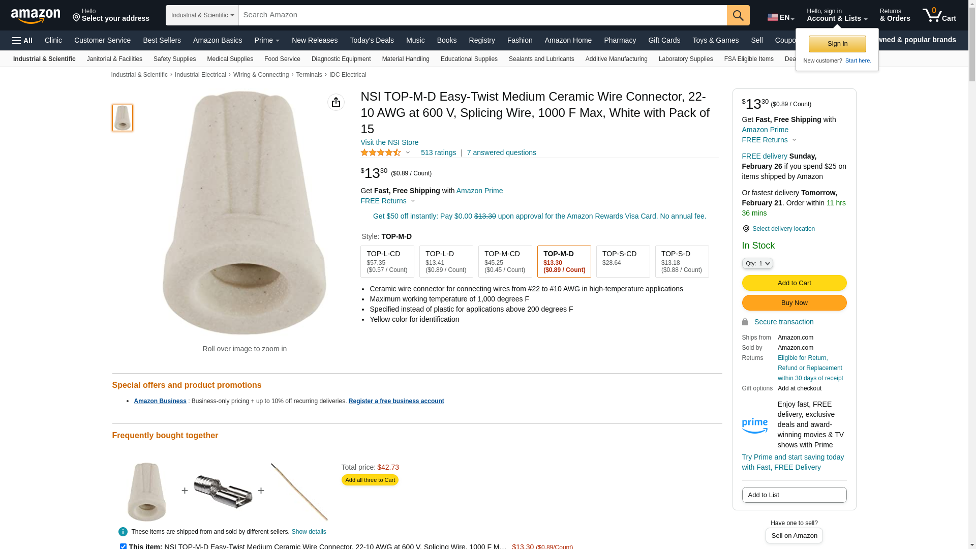 ![]() gordonelectricsupply.com | TOP-M-D | 1 | NSI Orders Over $150 Usually Ship Next Day Otherwise 5-7 Days | 1 | 1 @ $8.33 |